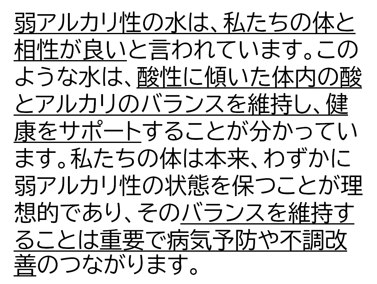 pH8.9のアルカリ温泉水は、身体を弱アルカリ体質にし老化を防ぎます。
